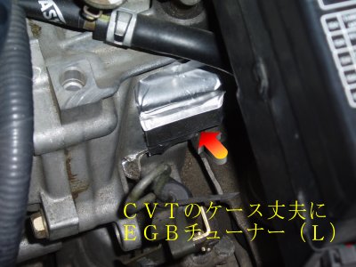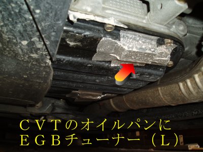CVTケースとオイルパンにチューナーLを一つづつ貼りました。CVTのため変速ショックはもともとありませんが