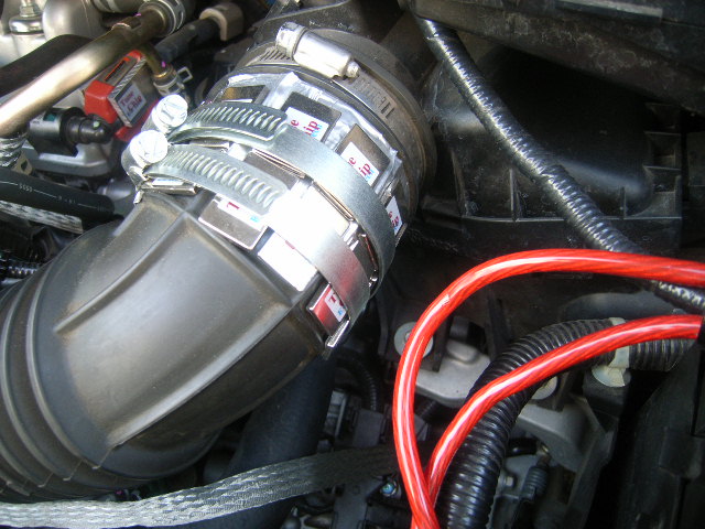 エアー&ホイール(nano)をインテーク管に4枚装着、エアクリーナーホースに16枚装着し