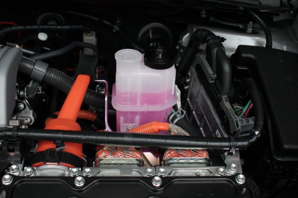 ハイブリッドの要であるPCUの上に1個、エンジンヘッドカバーに2個、フロントストラットの上にそれぞれ1個、