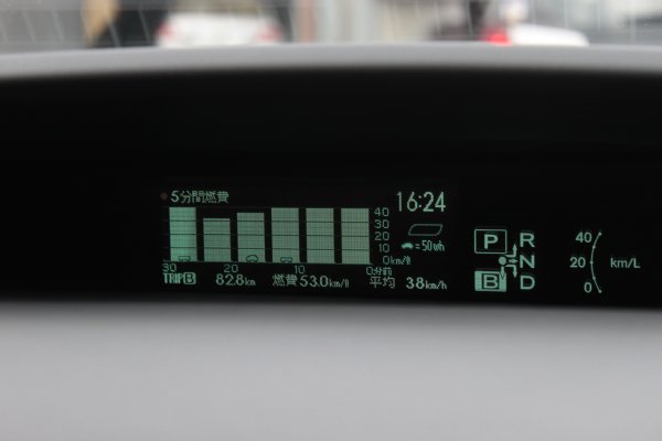 テストコース(熊本大観峰から八女ICまで)での82km区間の燃費は53.0km/L